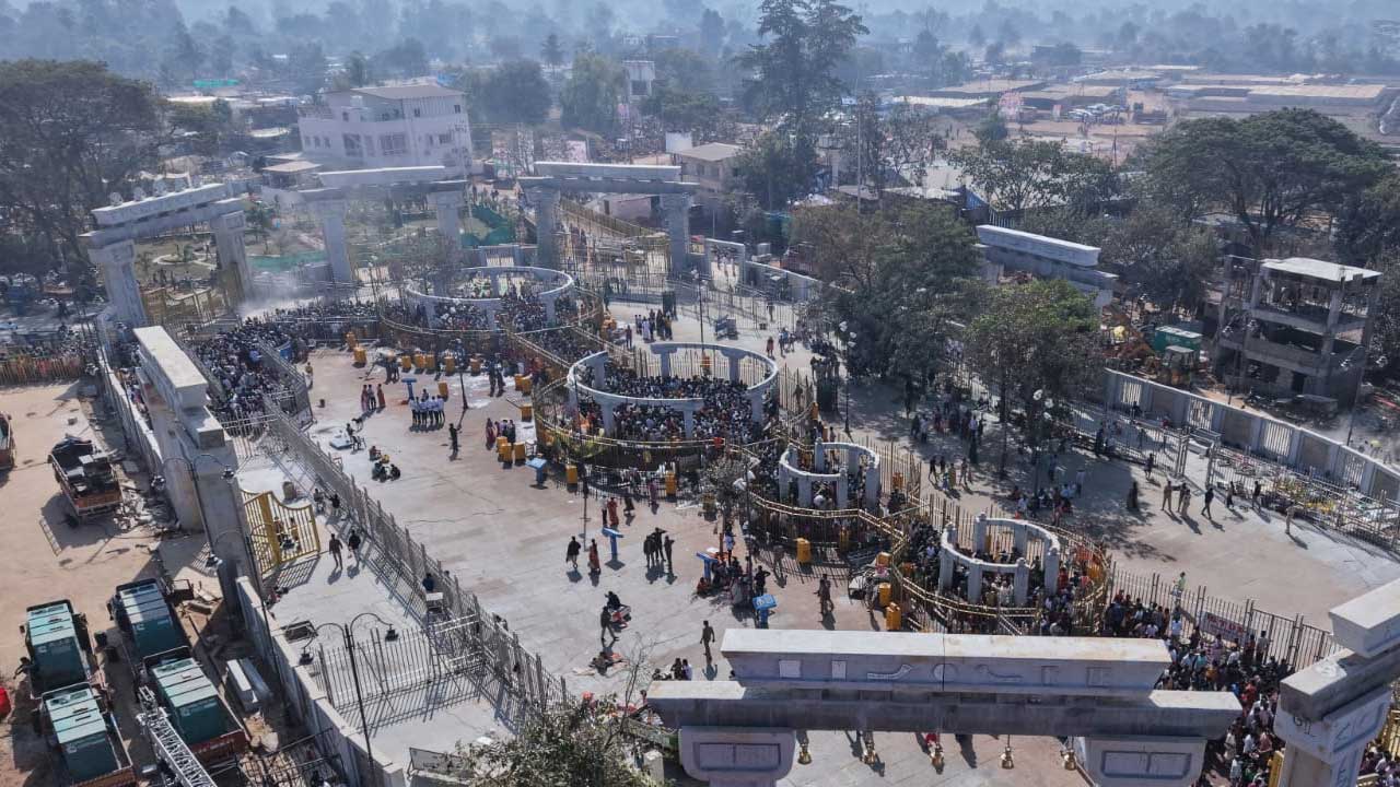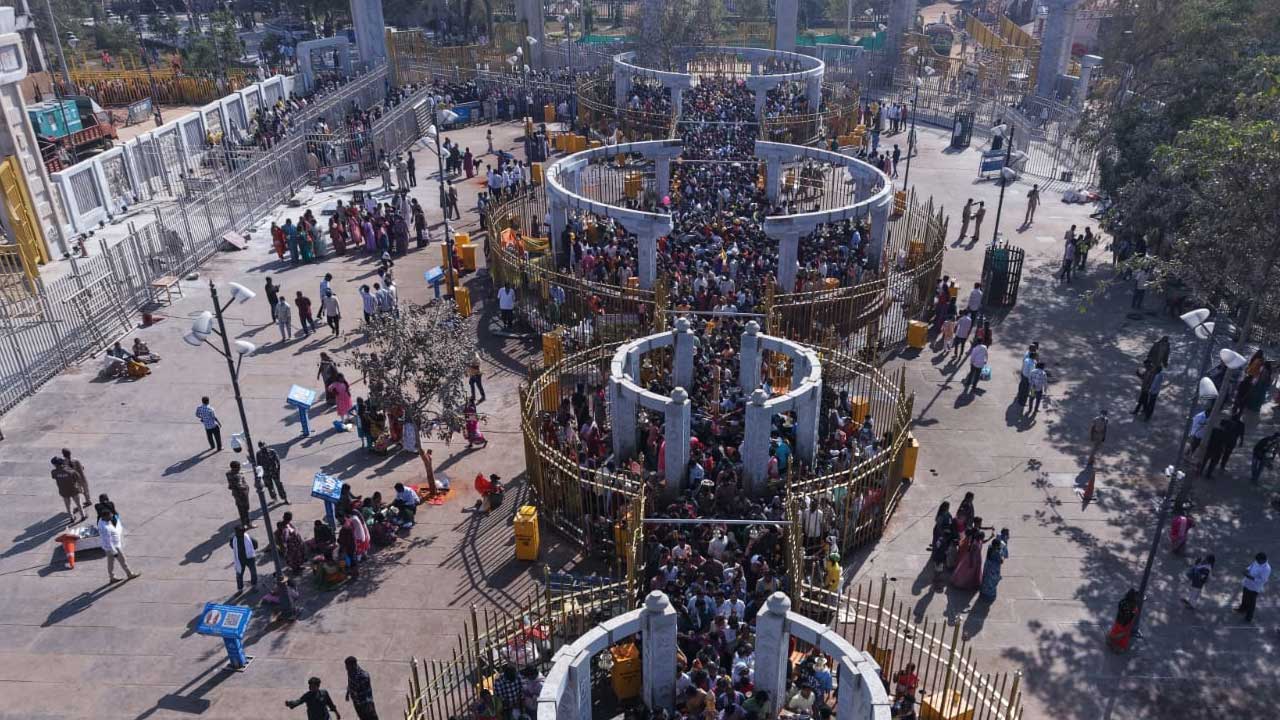 భక్తులతో నిండిపోయిన గద్దెల ప్రాంగణం