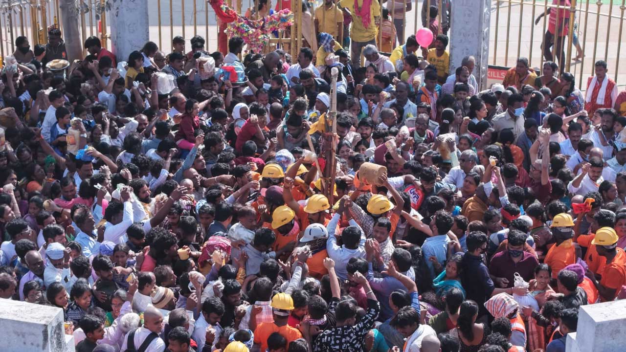 మొక్కులు చెల్లించుకునేందుకు బారులు తీరిన భక్తులు