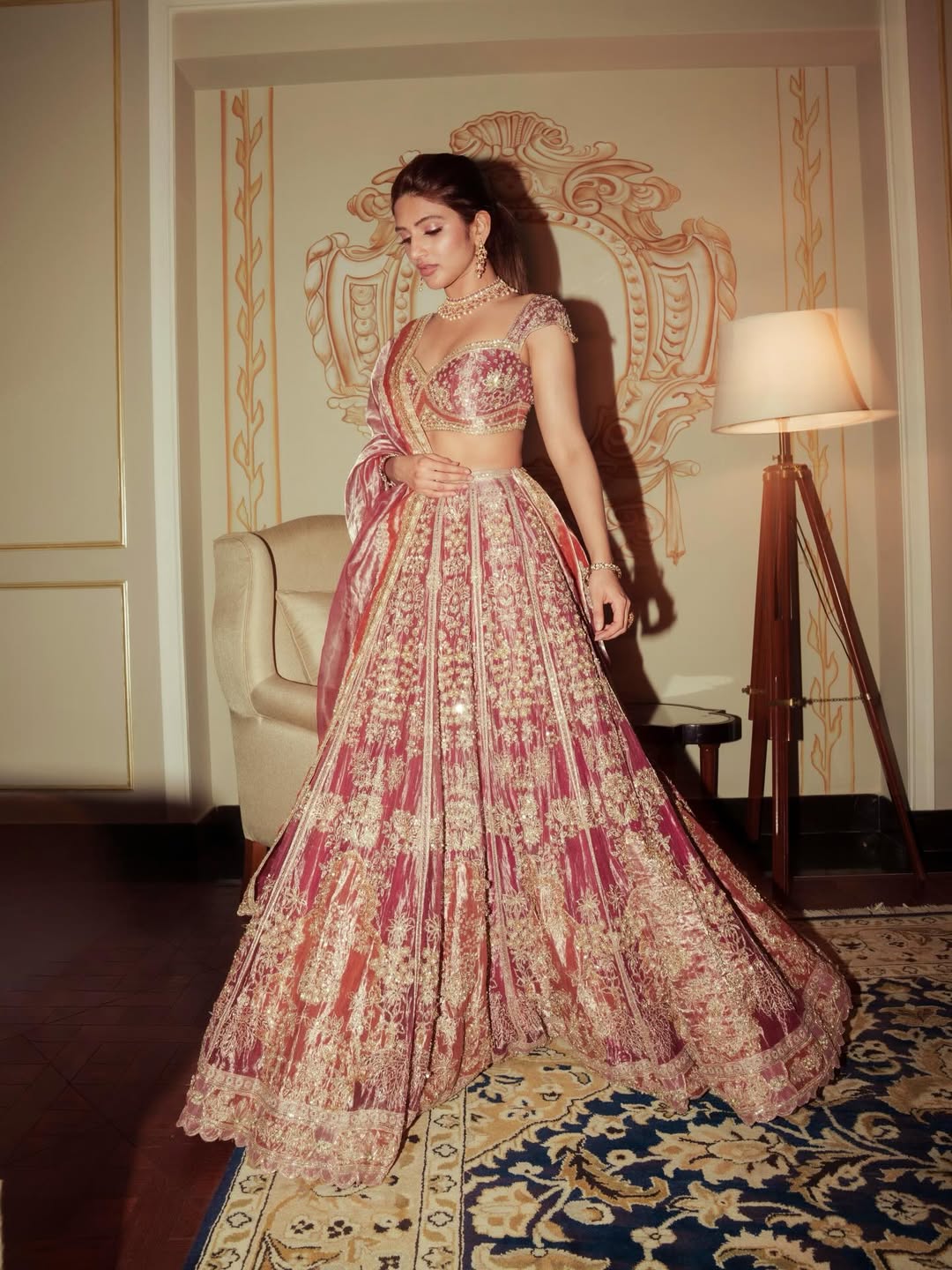 శ్రీలీల ధరించిన ఈ లెహంగా చూడటానికి సింపుల్గా ఉన్న కాస్ట్ మాత్రం మూడున్నర లక్షలకుపైనే ఉంటుందట.